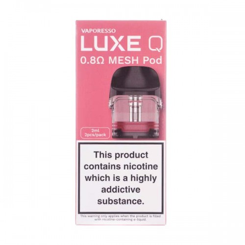 The Vaporesso Luxe Q Pod kit is a compact pod device created to deliver a flavourful and easy to use mouth to lung experience. Powered by a built in 1000mAh battery, the Luxe Q pod system utilises refillable pods with integrated coils. Available in either a 0.8ohm mesh or 1.2ohm mesh resistance, for best experience the pods are best suited to a high PG liquid (50-50) or nicotine salt.